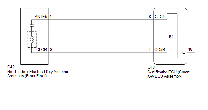 CHECK CERTIFICATION ECU (SMART KEY ECU ASSEMBLY) (OUTPUT TO NO. 1 INDOOR ELECTRICAL KEY ANTENNA ASSEMBLY (FRONT FLOOR)) |